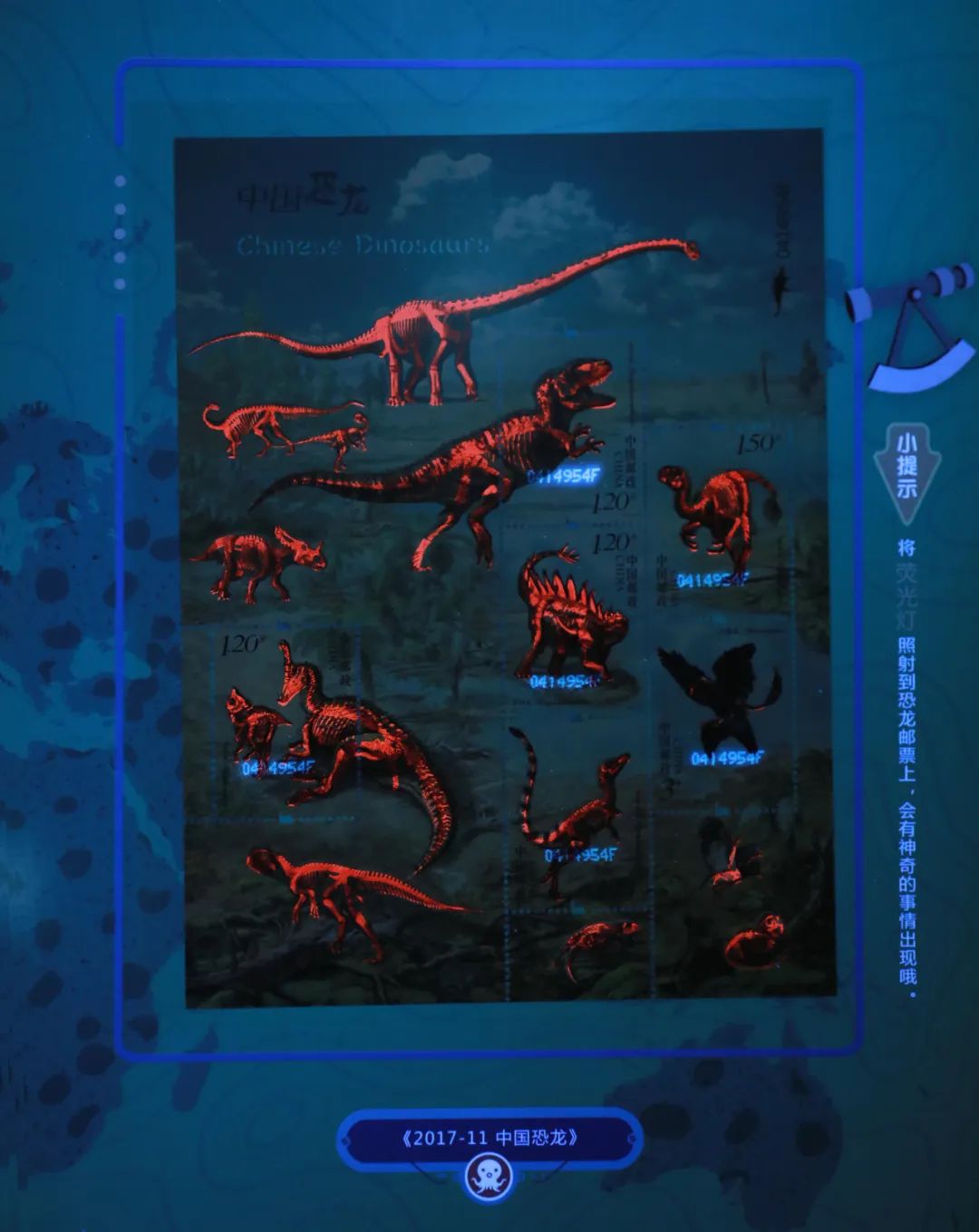 这本邮票书里不仅有邮票,还附赠了探索工具,等待你去发现神秘彩蛋。除了可爱的放大镜,让你看清邮票细节;还有一个紫光灯,当你用紫光照射邮票的时候,会有神奇的发现哦!