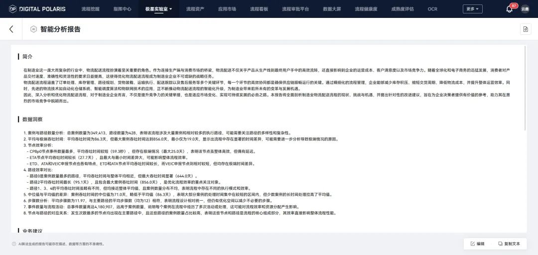 数字北极星与DeepSeek的融合,突破了传统流程挖掘技术的边界,开创了一系列新的功能模块,使得数字北极星平台在AI赋能流程智能的过程中,完成了流程智能的底层范式迁移。
