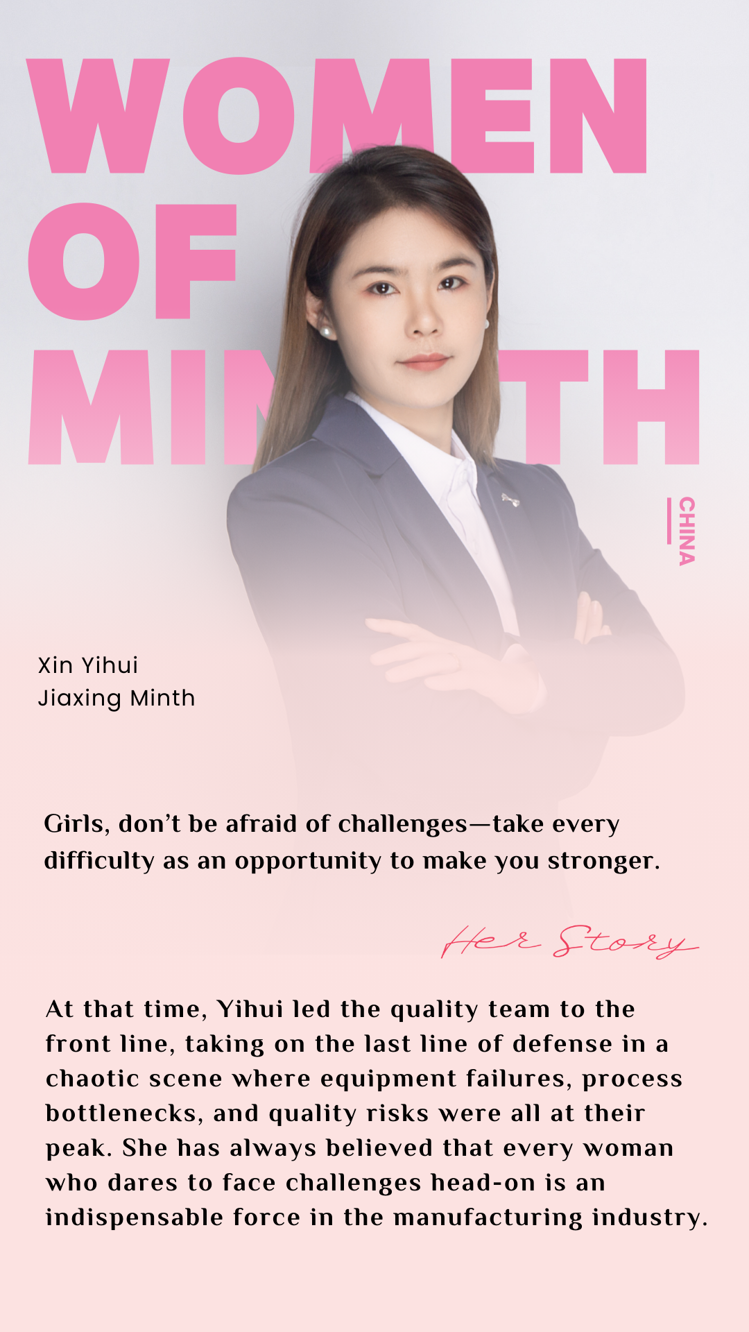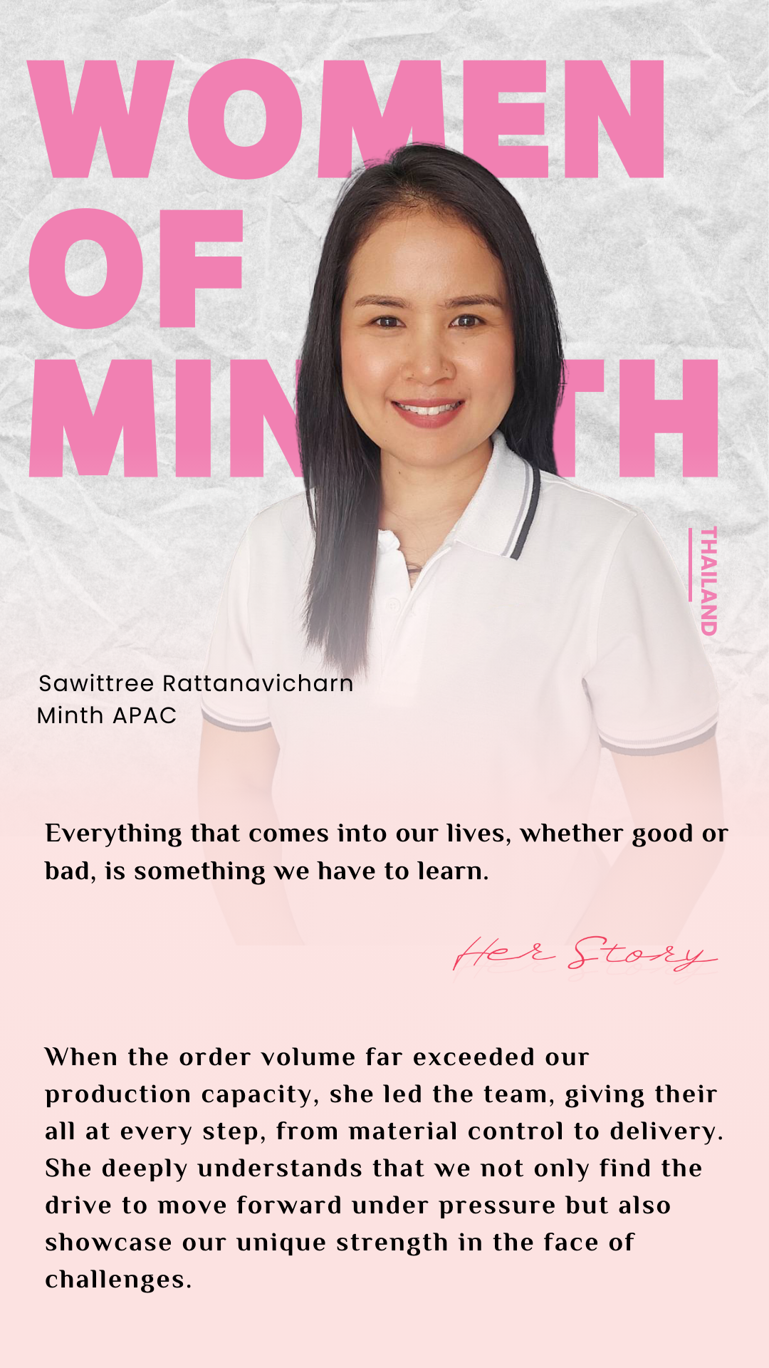 We extend deep gratitude and heartfelt blessings to almost 6,000 female employees and more than 8,000 female family members at Minth