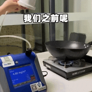 我们之前用一台仪器测过室内油烟, PM2.5 浓度瞬间爆表,可以达到重度污染的 40 倍!