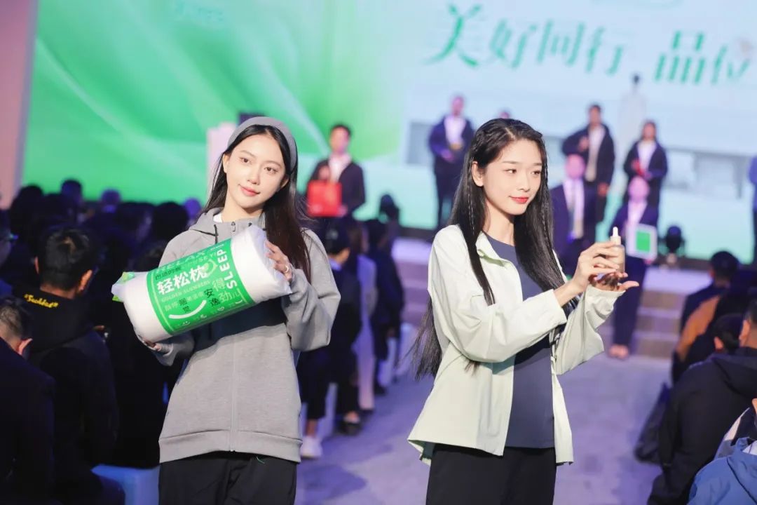 在美好生活文创产品体系发布上,“美好同行”的模特们展开了一场让观众眼前一亮的主题走秀。身着三棵树美好生活鞋服的模特们,手执美妆和头盔等“品位生活”产品,以优雅而自信的步伐踏上舞台,编织了一场中国传统文化、奥林匹克精神与现代设计完美融合的文化创意盛宴,生动展示了美好生活8大文创产品体系,带着现场观众一同解锁对美好生活的期待。
