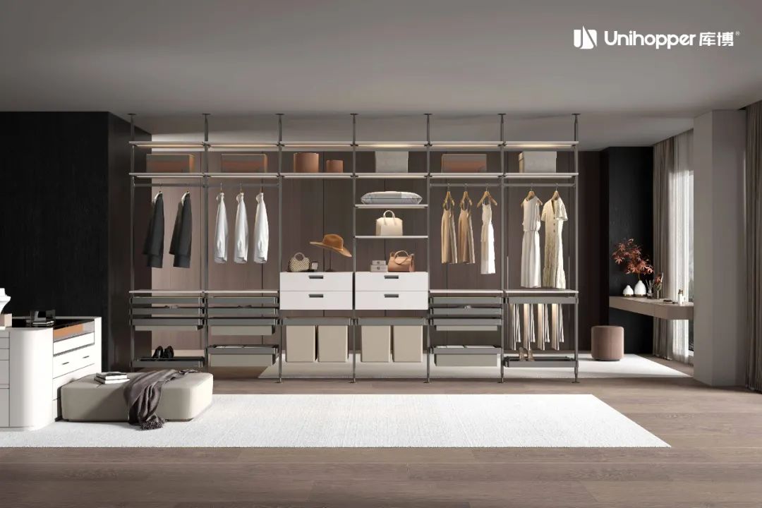 此次家博会,Unihopper库博将带来六大品类的革新之作,涵盖铰链、导轨、骑马抽、衣柜收纳、厨房收纳、水槽龙头。这些原创星品不仅诠释了库博“更懂高端家居的五金品牌”的品牌定位,更体现了库博对于创新设计与卓越品质的不懈追求。