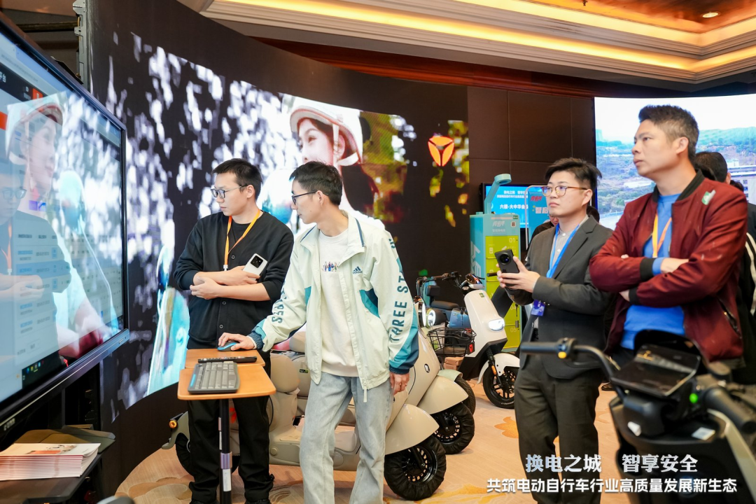 雅迪作为行业代表受邀亮相,分享了雅迪在钠电换电领域的研究方向与应用成果,基于华宇极钠超充生态实现“以换代充”模式,将充电风险从源头化解,满足用户“既要安全高效,又要智能便捷”的全面需求。相关政府部门领导点赞雅迪华宇换电方案:“为行业提供了可复制的安全范式,助力深圳打造全球首个‘换电之城’”。