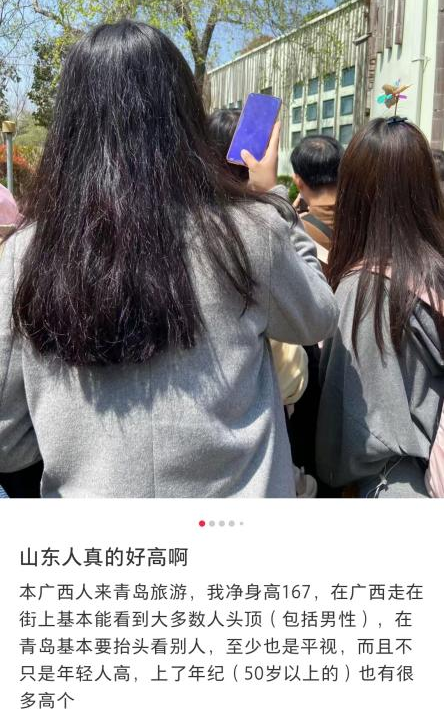 山东人的身高,也时不时冲上热搜,震惊省外网友,比如“1米9青岛大爷持2米艾蒿挤地铁”,“山东17岁女孩身高超2米2被称下一个姚明”。