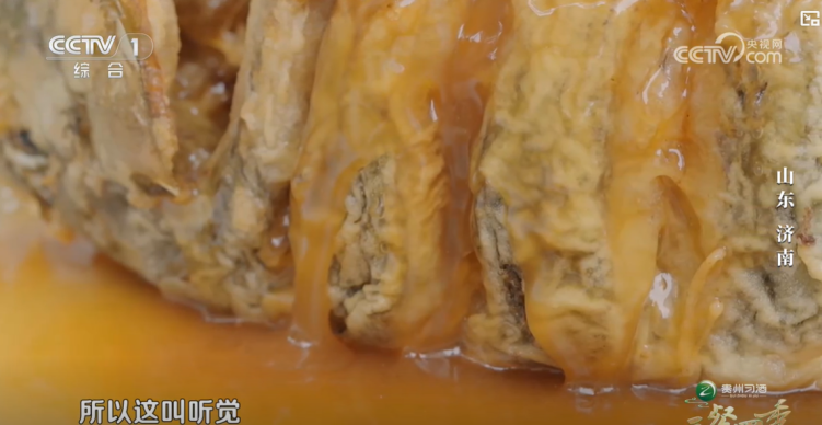 糖醋鲤鱼,是非常有代表性的济南风味鲁菜之一。经过给鲤鱼去腥线、腌制、裹满面糊、炸鱼,捞出后,在锅里倒入蒜末、醋、糖,再进行熬煮,最后浇汁,一道色香味俱全的糖醋鲤鱼就出炉了。