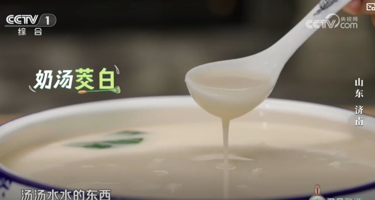 吃一口煎饼,喝一口奶汤茭白,口感就更滋润了。