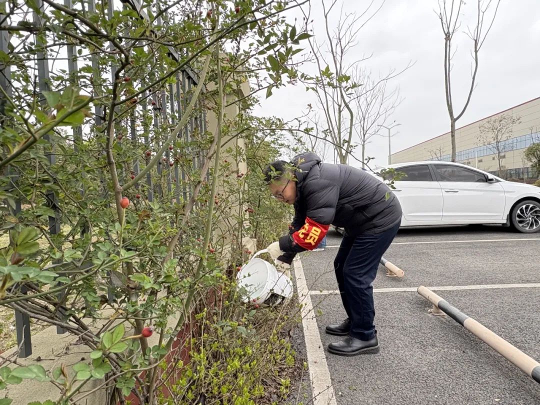 下午两点,党总支书记在动员大会上讲道,开展此次主题活动,不仅是为大家带来舒适的办公环境,更在于塑造党员精神内核,要像养护绿植一样精心培育廉洁文化,让清廉之根深扎土壤,让合规之花开满枝头!随后,党建工作部部长、综合党支部书记秦尘林划分党员责任片区,全员戴上手套、拿起工具,投入到园区绿植养护中。