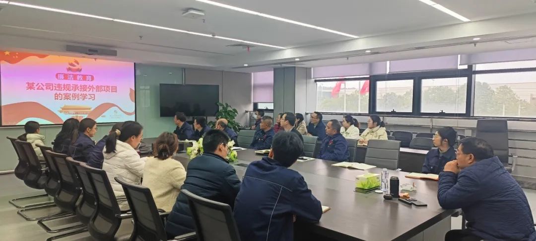 劳动结束后,全体人员移步216会议室,开启了一场“廉洁文化”专题学习。通过研读《健全全面从严治党体系》、学习中央、省、市纪委会议精神,剖析某公司违规承接外部项目的案例,与会者以案为鉴、深挖根源、结合自身岗位研究防范措施,党总支书记郭龙结合《国有企业管理人员处分条例》,以“筑牢防线、扎紧篱笆”为主题讲授专题党课。