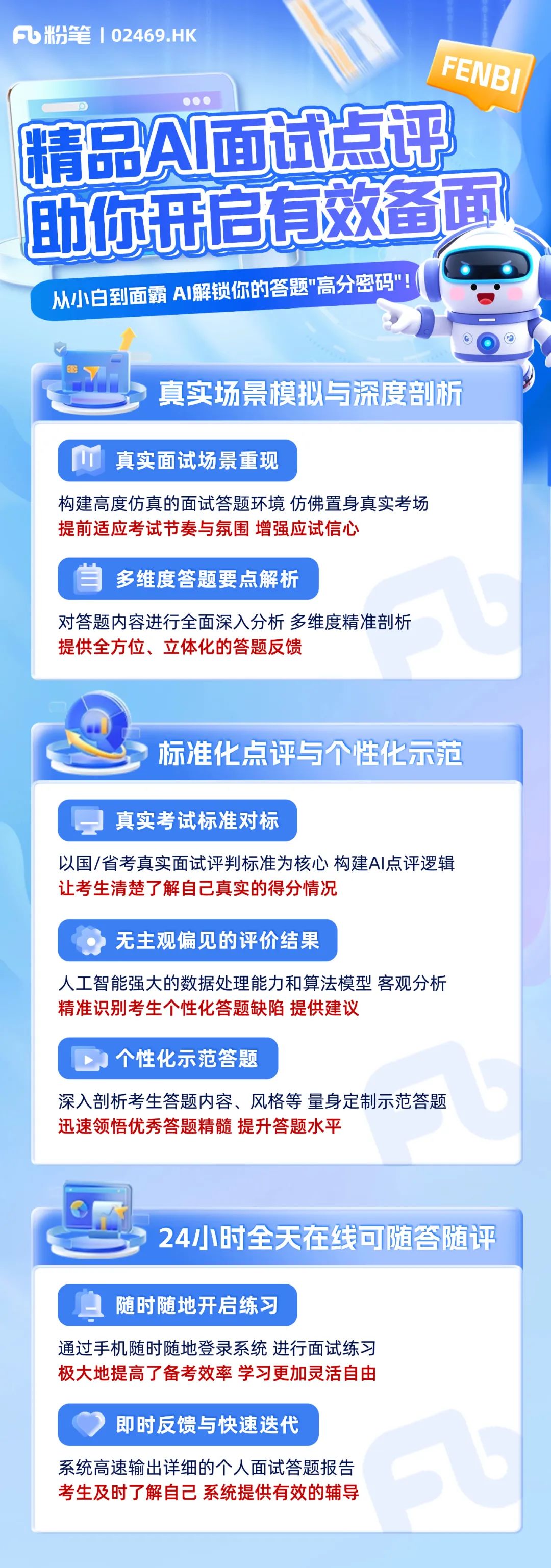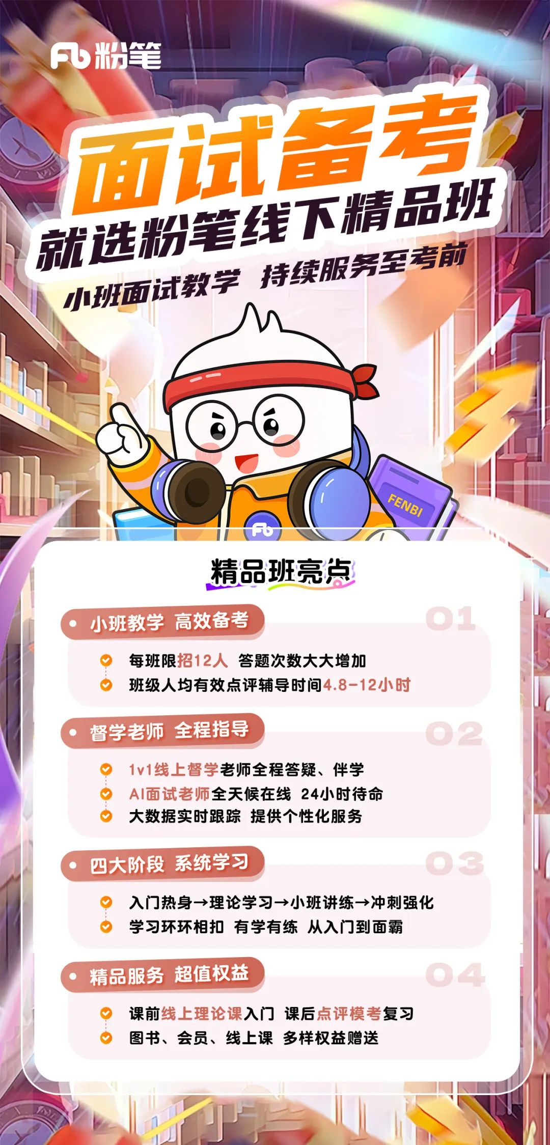 入门热身→理论学习→小班讲练→冲刺强化精品AI面试点评 24小时全天在线