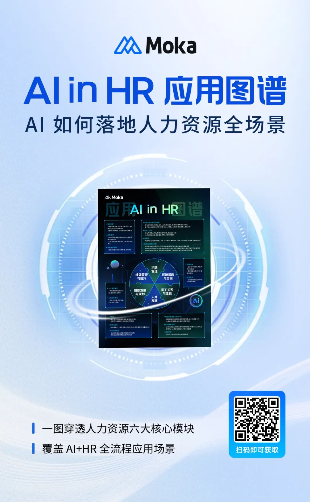 基于长期行业洞察,Moka 正式推出《AI in HR 应用图谱》,该图谱聚焦人力资源关键场景,旨在为企业提供从人才招入到组织发展全链路的 AI 落地参考框架。