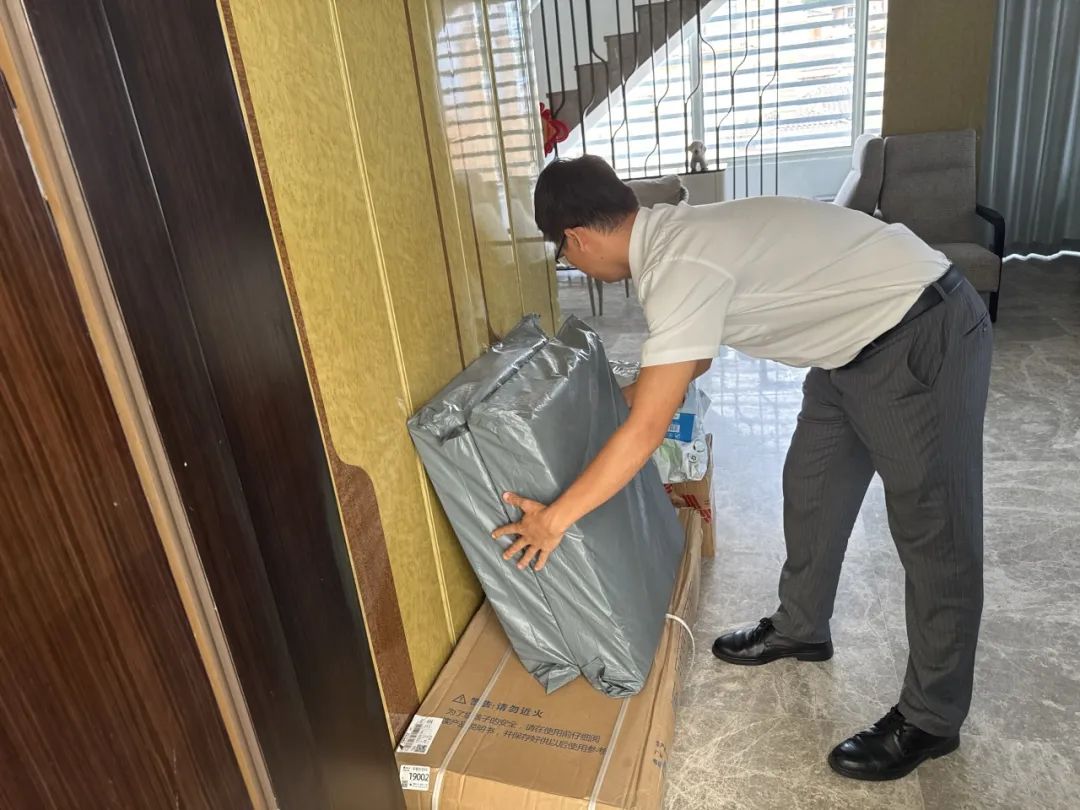 在此期间,由于天气情况不佳,台风频繁来袭,雨季连绵不绝,导致屋内潮湿。管家会贴心做好屋内除湿和防台等工作,晴天按时开窗通风,雨天及时关闭门窗除湿。同时管家为业主整理家具,认真仔细地检查窗户等处的缝隙,查看是否有屋内漏水等情况。对于业主迟迟未到的快递,管家尽心帮忙联系快递公司处理,积极跟进快递物流,帮业主完好无损地拿到快递。
