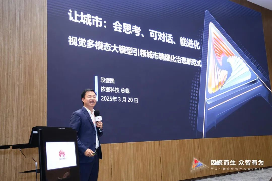 依图科技总裁段爱国在“数字政府政务行业论坛”发表了题为《让城市:会思考、可对话、能进化--视觉多模态大模型引领城市精细化治理新范式》的主题演讲。段爱国在演讲中表示:传统“视频+AI”技术因长尾算法开发效率低、泛化能力弱等问题,难以支撑城市治理的大规模应用,而依图天问多模态大模型所具备的三大核心能力--“0样本创建新算法、小样本现场迭代、语义搜万物”可以高效应对这些挑战。他以南京“城市之眼”项目为例,展示了该平台4个月内创建80+种新算法,快速实现了“想法即算法”的突破,从需求提出到算法上架运行,平均为3~7天,相较于小模型整体效率提升近60倍,准确率达93.43%,实现了算法从“能用”向“好用”转变。AI 2.0时代,视觉AI助力城市数智化进入发展快车道。依图与华为携手,共建底座智能化、业务模型化、数据价值化、应用智慧化的城市智能体,将推进城市精细化治理新范式,实现城市治理的全域数字化转型。大会期间,依图科技凭借在视频AI领域的创新实践,获颁“华为中国政企数字政府安平系统部联合创新奖”。同时,作为华为园区军团的核心伙伴,依图正式加入“鸿蒙+AI智慧园区产业联盟”,标志着双方合作从政务领域向智慧工厂、智慧园区等泛企业场景的全面拓展。 随着AI算力基础设施的持续完善,2025年将成为智能化转型的爆发之年。依图科技将持续深化与华为的战略协同,围绕视觉大模型、城市智能体、智慧园区等场景,推动技术、数据与业务流的深度融合,为千行百业提供更智能的全场景数智化AI引擎。