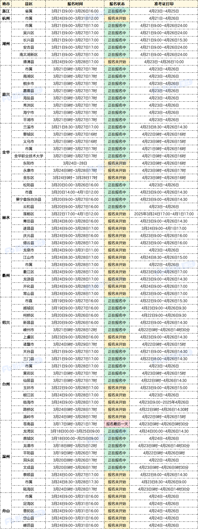 小粉笔也整理好了各个地区的报名时间和准考证打印时间表,避免大家错过时间错失机会!