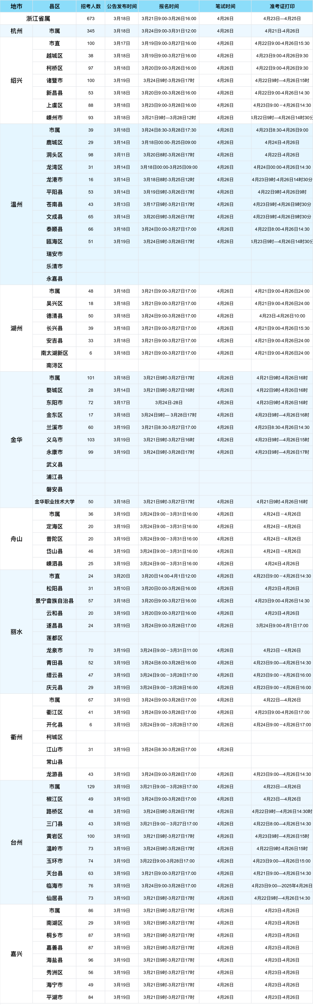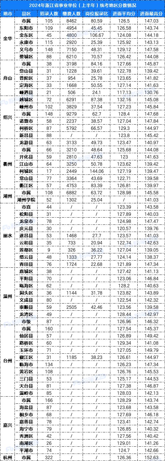 整体看来,去年上半年竞争最大的地方是衢州的柯城区和金华的金东区,分数最高的是绍兴的越城区和台州的路桥区,想要报考这几个地方的同学可以再斟酌一下,但每年的报名情况还是会有一些浮动的。