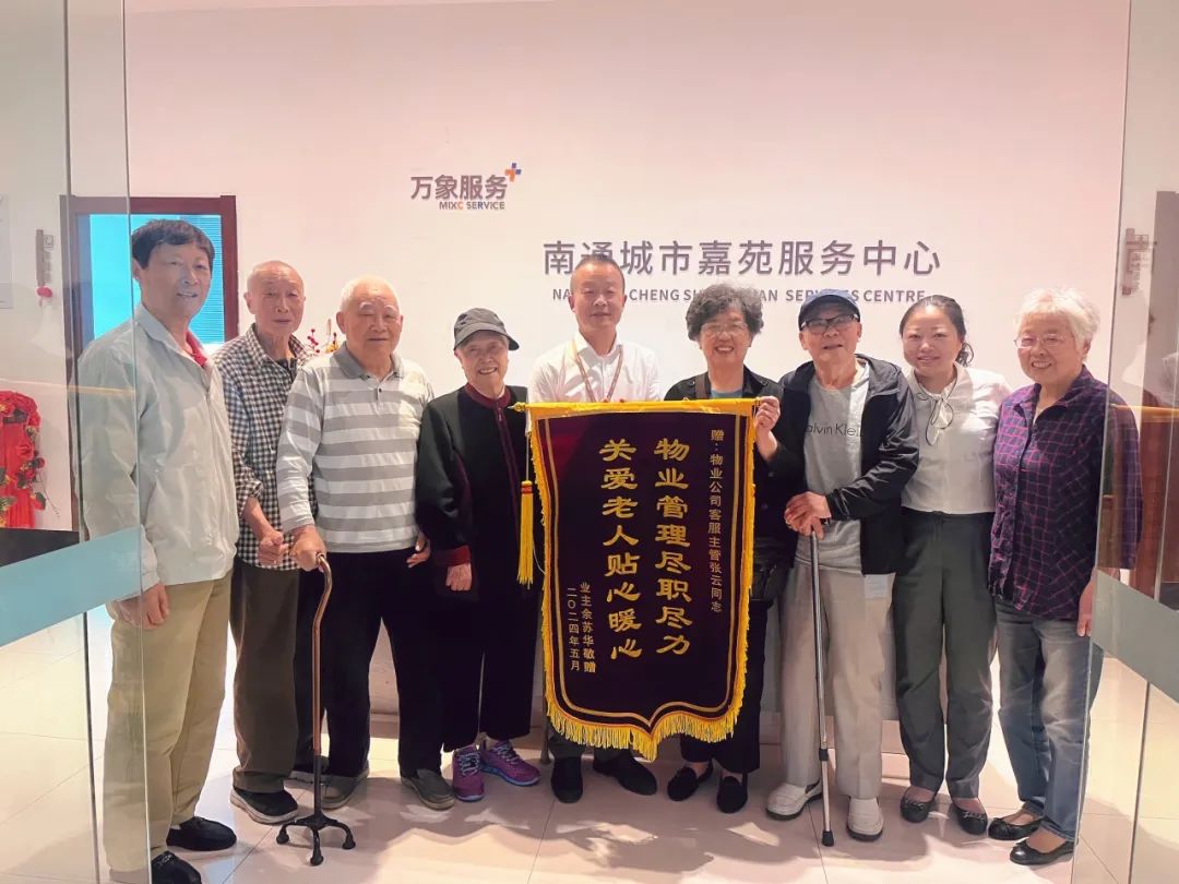 2024年5月28日上午,张云收到一面荣誉锦旗—“物业管家尽职尽力,关爱老人贴心暖心”。原来一天下午,张云接到业主余阿姨的电话:“小张,我血压高压182了,需要立即到医院,但我的女儿在外地,女婿也发热,我实在没办法了,帮帮我!“余阿姨今年85岁,她伴侣88岁行动不便。张云便立即带余阿姨到南通附院急诊室,陪同挂号、抽血、检查....直到老人恢复稳定。旁观者都对余阿姨说“你女儿真好!“