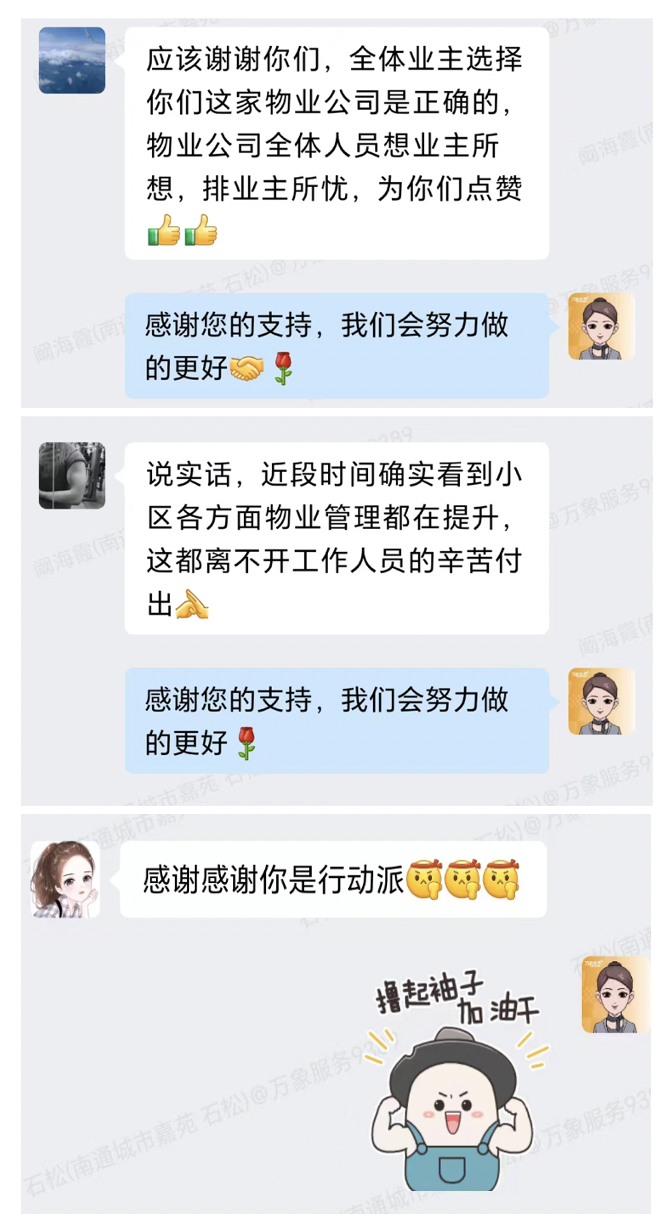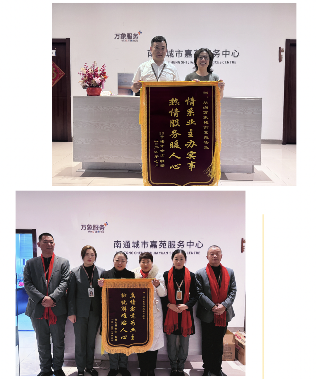 365天的辛勤耕耘,万象服务在城市嘉苑交出一份高分答卷,凭借专业实力与温情服务,收获7面荣誉锦旗、10余封满载感激的表扬信,以及线上150+次的真诚点赞,业主满意度攀升至95%。点点滴滴,皆是万象服务品质提升的生动注脚。