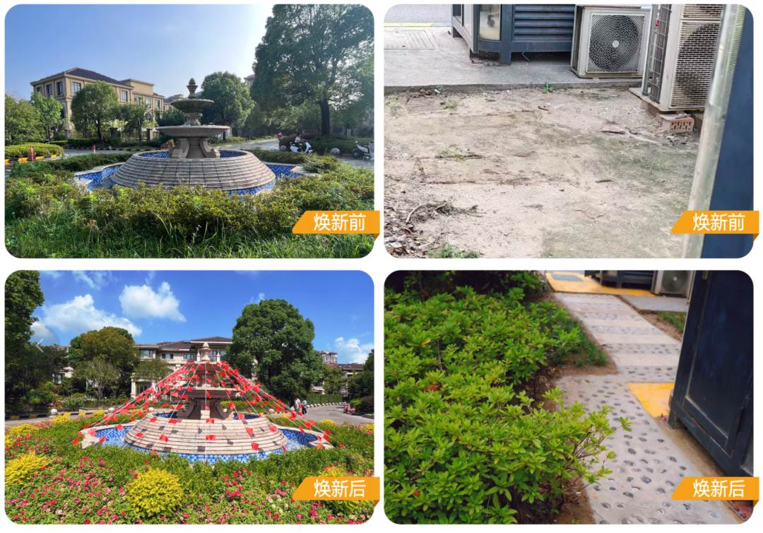 项目团队对园区绿化进行全面排查,掌握植被种类、现有养护状态及存在问题,据此定制个性化养护方案。从专业的修剪灌溉,到应季花卉的点缀、枯死植被的补种 ,如今的园区,移步异景,四季有花,仿若置身静谧森居,处处洋溢着盎然绿意。