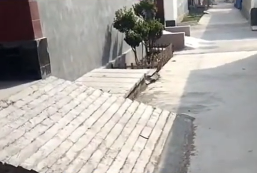 村民门口的地面凹陷无法解决,就找到老家在旁边,常年在外赚钱的老板。