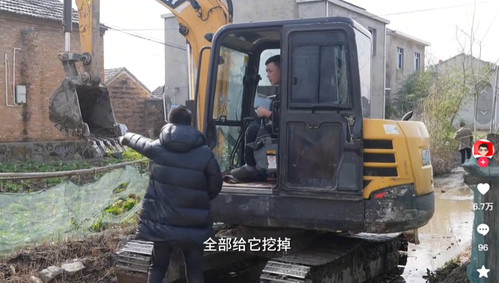 第二天果断行动,带着挖掘机上门。