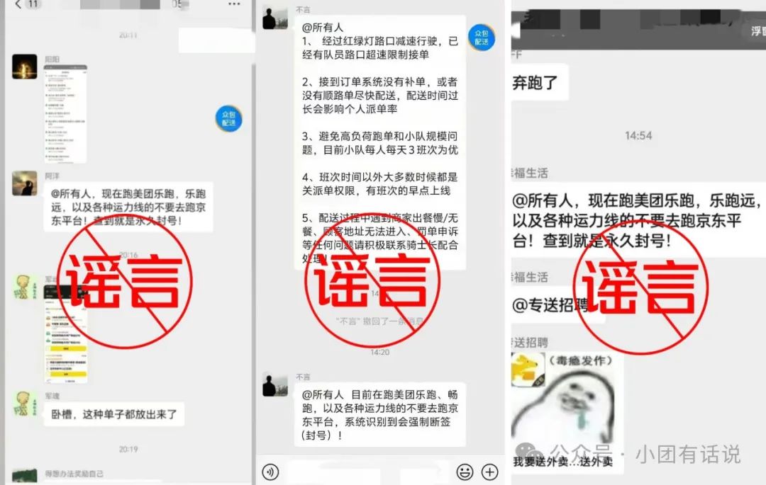 小团提醒,请广大骑手小哥保持警惕,切勿轻信或传播任何未经证实的信息。如遇到侵害骑手权益的行为,可以向小团或者通过举报邮箱(tousujubao@meituan.com)提供线索,公司将核实情况并作出处理,联动各方从严打击各类制造、散播谣言的不法行为,坚决维护清朗网络环境。
