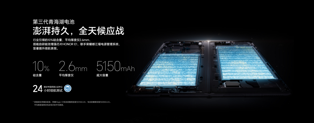 处理器配置上,荣耀Magic V3采用第三代骁龙8旗舰芯片,基于第2代台积电4nm工艺,采用 “1+5+2”架构,主频最高可达3.3GHz。搭配荣耀蝉翼钛金散热VC,散热性能相比上一代提升53%,同时搭载自研射频增强芯片HONOR C1+和独立安全储存芯片,出境更便捷,隐私更安全。续航方面,荣耀Magic V3采用荣耀第三代青海湖电池,容量达5150mAh,也是行业首个硅含量达到10%的硅碳负极电池,保证轻薄同时提供双屏长续航能力。目前,荣耀Magic V3的起售价为8999元,提供12+256GB、16+512GB、16+1TB三个版本。