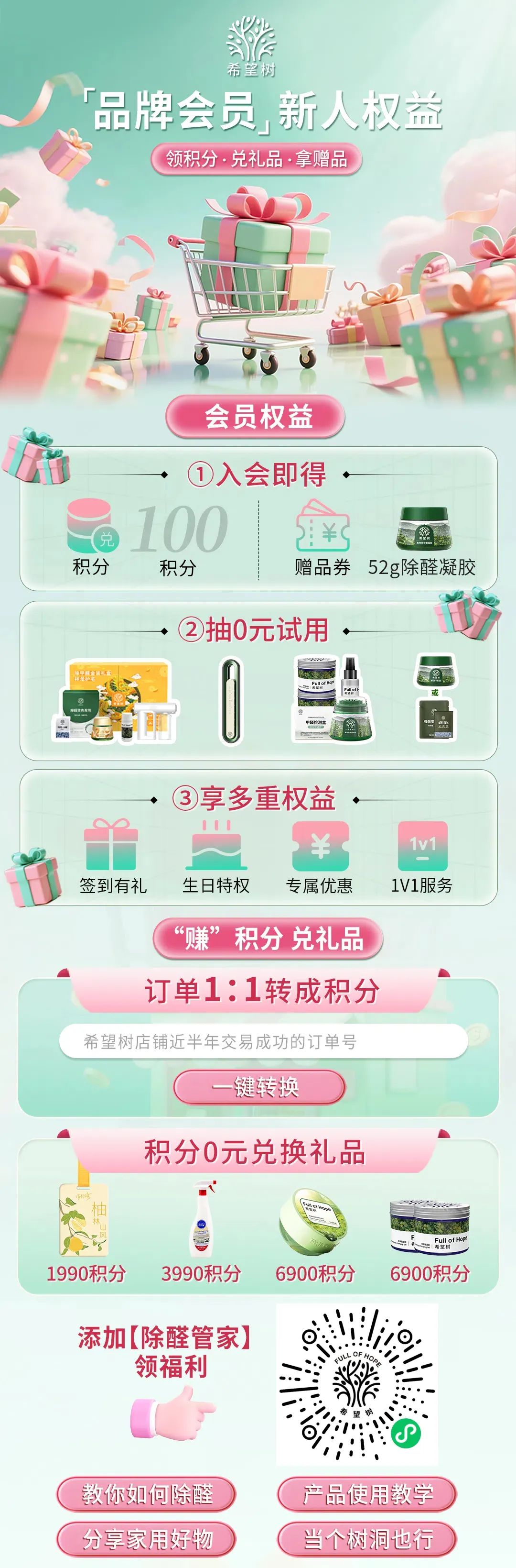 点开!领希望树【新人权益】!领积分,兑好礼,拿赠品,享专业除醛服务