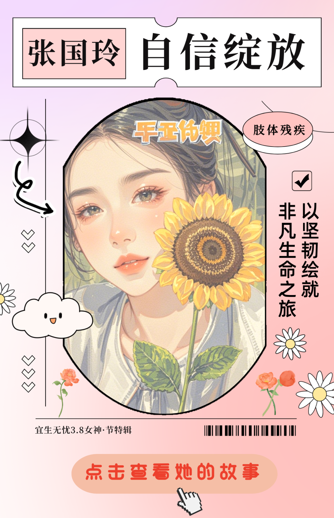 一路繁花 自信绽放 在春风中绽放,在岁月里坚韧。当三八妇女节的暖阳洒向大地,我们不仅要为每一位女性的美丽与力量喝彩,还有在命运的挑战中依然闪闪发光的女性——光芒女神。她们用顽强的毅力打破偏见,用乐观的态度拥抱生活,用实际行动证明:生命的光芒从不因身体的残缺而黯淡。