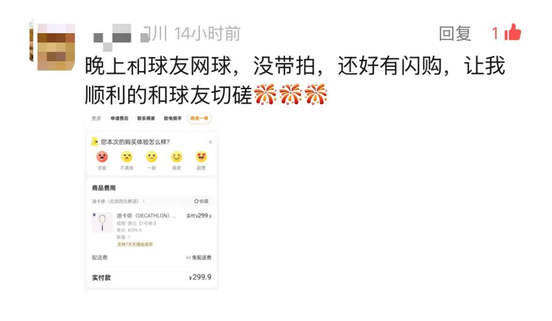 第1227条晒单,闪购了一次“比赛”。送达的不只是球拍,还有"下次再战"的约定。