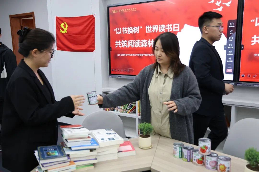 在此背景下,4月23日北京金融科技学院创意艺术学院数字媒体艺术本科生党支部在M1-201举办了“以书换树”世界读书日共筑阅读森林活动。党支部号召党员、积极分子和发展对象发挥党员的先锋模范作用,积极捐赠图书,通过流动书籍进社区,丰富居民文化生活。