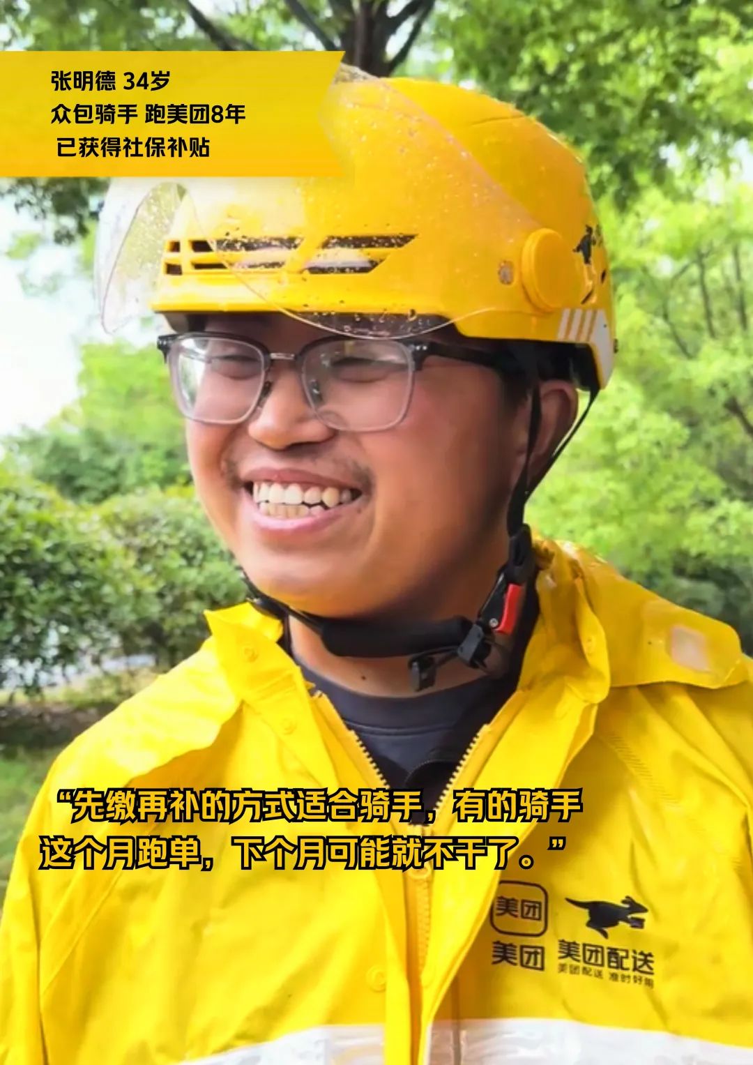 “先缴再补的方式适合骑手,有的骑手这个月跑单,下个月可能就不干了,代扣代缴不够灵活。”