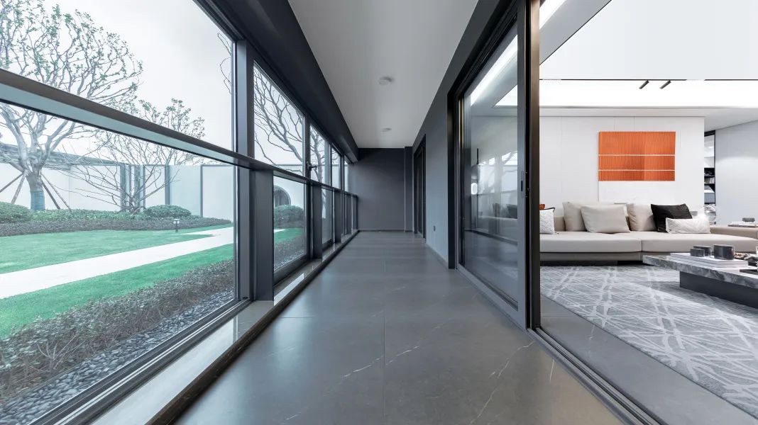 武汉融创光谷壹号院,首创通体大面积干挂石材、铝板、玻璃窗墙设计,构建起通透舒适、时尚与实用兼备的“城市之镜”。全屋南北向均配置整面落地窗,客厅、餐厅、主卧乃至书房,充足的自然光被引入家庭空间每个角落。南向阳台采用推拉式门窗系统,打开即为开敞式阳台,关闭即为封闭式阳台,业主既可享受自然风的舒适,又可兼顾居家私密性。