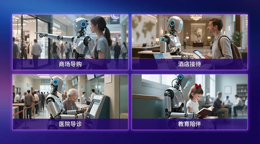 在商业场景中,商场导购机器人能精准捕捉顾客需求,如私人购物顾问般推荐心仪商品;酒店服务机器人不仅能快速办理入住,还能化身“本地通”,介绍周边美食与景点;医院导诊机器人则凭借专业知识库,迅速为患者指引科室路线。
