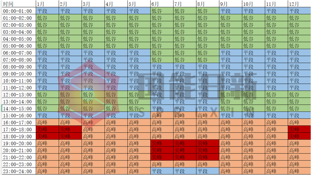 河北南网的时段按照峰平谷划分,不同季节时段划分不同,在冬夏两季存在尖峰时段,整体划分如下: