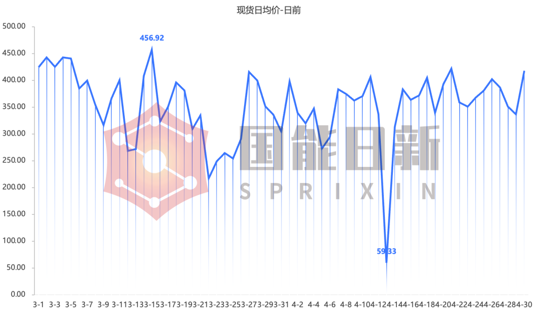 从2025年3月1日开展现货结算试运行,截至4月30日,现货市场日前出清均价为353.85元/兆瓦时,最低为59.33元/兆瓦时(4月13日),最高为456.92元/兆瓦时(3月15日);
