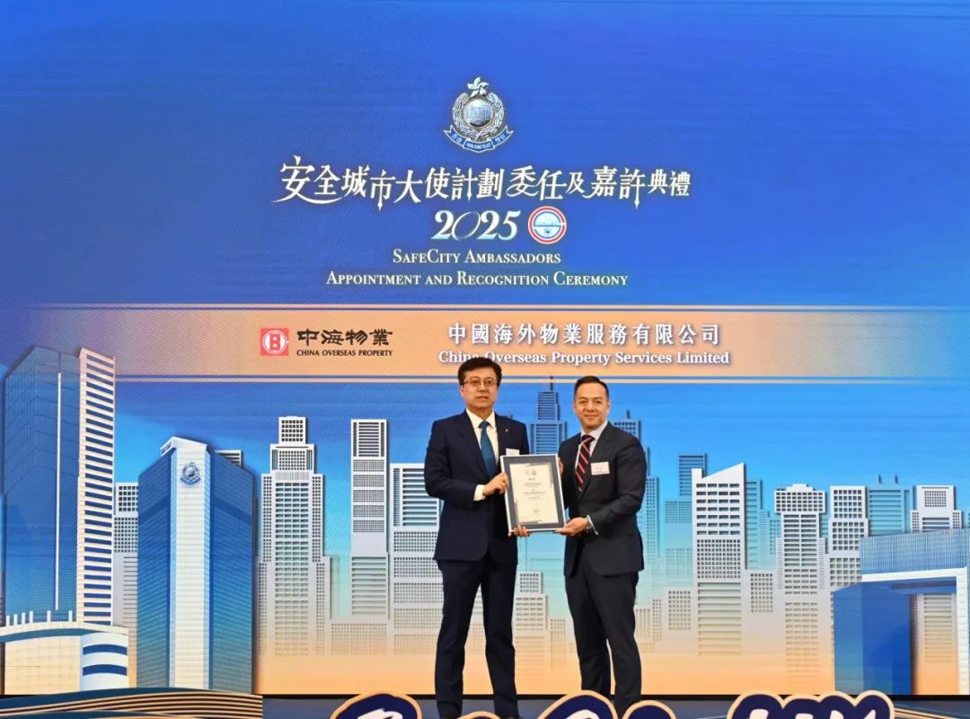 5月16日,香港警务处举行第三届“安全城市大使”计划委任仪式。作为香港物业管理标杆企业,中海物业凭借覆盖全港十八区的服务网络及丰富的基层安防实践,获香港警务处防止罪案科委任为2025年度“安全城市大使”。