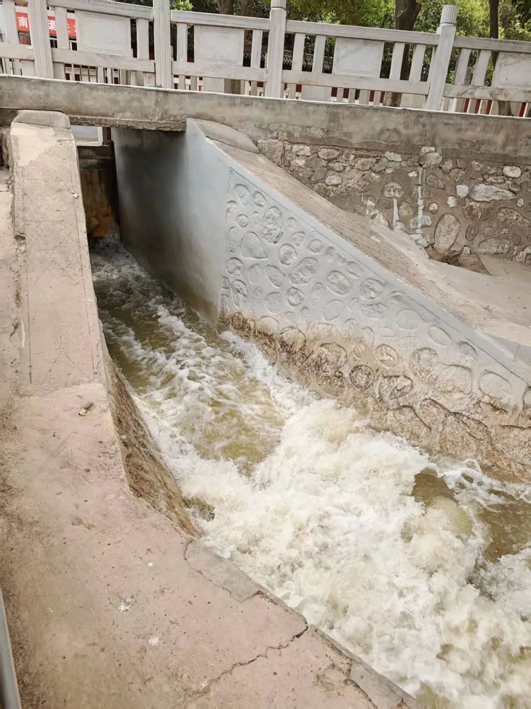 6月5日上午,调研组在夹马口灌区实地查看了二郎神渡槽改造后运行情况。深入了解渡槽建设实施过程,涂层防护施工工艺等。运城市夹马口引黄服务中心副主任张谦介绍了自春灌抗旱大流量运行期间渡槽改造后的运行效果。科海利公司徐潇介绍了渡槽伸缩缝涂覆型柔性止水结构、聚合物水泥砂浆修复技术、SK降糙防护涂层、PCS防碳化防护等新技术和新材料的应用情况。座谈会上夹马口引黄服务中心主任范永胜肯定了我司渡槽改造工程建设应用效果,同时与调研组在工程建设、水权分配和管理等方面进行了交流和讨论。