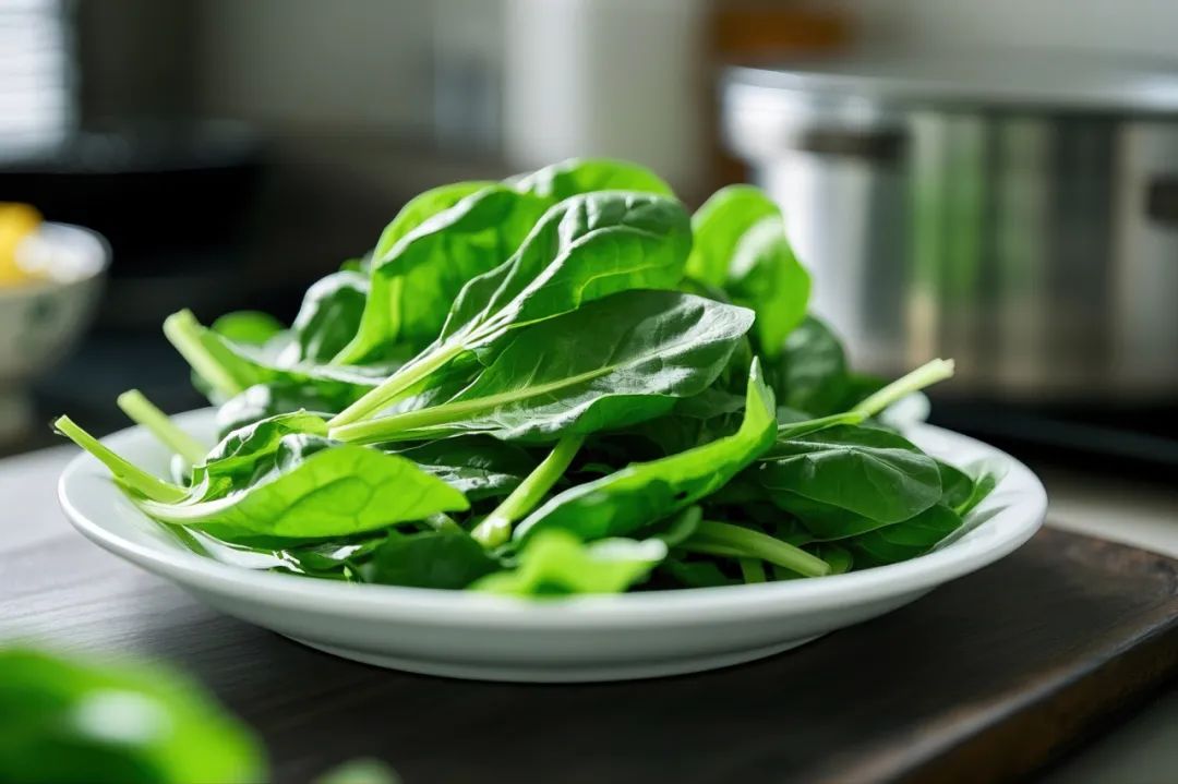 3、两者混合,加蒜末、生抽、醋、芝麻油拌匀,撒熟芝麻。菠菜:高纤维 + 维生素 K(促进凝血),夏季食用帮助缓解便秘,同时维生素 B6 参与糖原合成,预防低血糖。