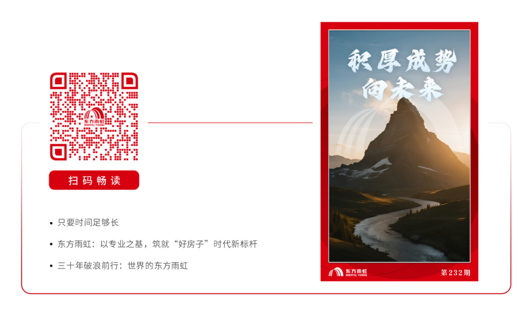 From an entrepreneurial perspective, time blends with the dreams of strivers, accumulating courage, resilience, wisdom, and sweat. In the grand sweep of history, Oriental Yuhong's 30 years are merely a prologue, just 6% of 500 years. Yet we are witnessing and experiencing the dawn of a great endeavor. The more we act, the deeper our understanding grows; the deeper our knowledge, the further our actions reach. Given enough time, quality products and services will inevitably be seen and recognized by the public. Given enough time, we can solve more construction challenges, drawing ever closer to becoming the world's most valuable building materials and systems service provider. Given enough time, we can forge friendships grounded in virtue and righteousness. Given enough time, we can lead more people to shared prosperity and mutual benefit.
