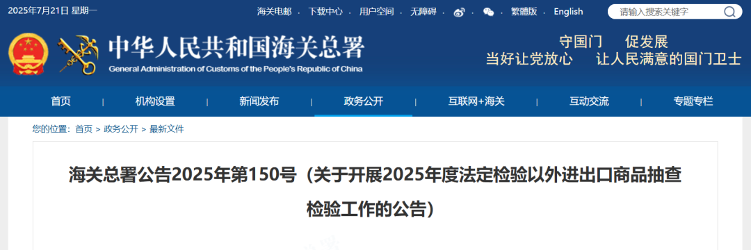 海关总署 | 开展2025年度法定检验以外进出口商品抽查检验工作