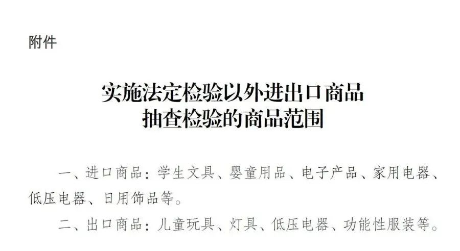 为保护消费者合法权益,维护人民群众生命健康安全,根据《中华人民共和国进出口商品检验法》及其实施条例有关规定,海关总署决定自2025年8月1日起依法对法定检验以外的部分进出口商品实施抽查检验。抽查检验商品范围见附件。
