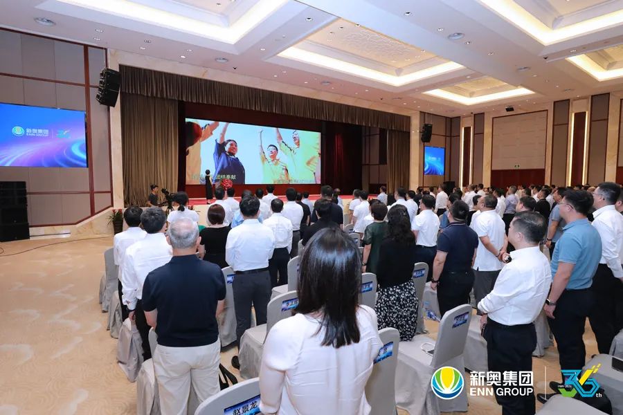 上午8时30分,以“落实客户牵引 激发伙伴自驱 加速智能化转型蓝图的全面实现”为主题的新奥创业36周年庆祝大会在庄严的国歌声中拉开帷幕。