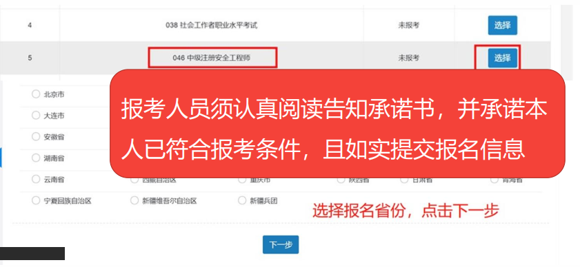 特别注意,报考人员原则上应该在“工作地”或者“居住地”就近报名参加考试,切勿乱选省份,否则可能会出现审核不过等问题。