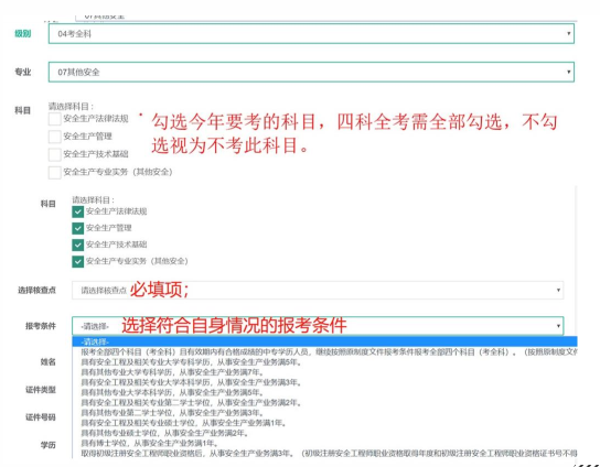 (1)报考人员填写的学历、学位、专业,需要符合中级注册安全工程师报考条件所需的学历和专业。