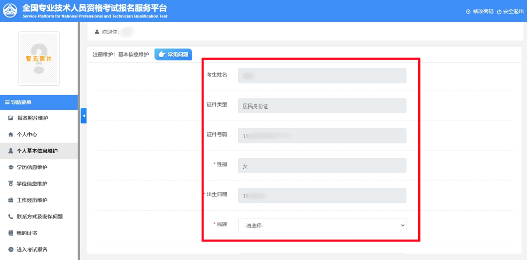 第二部分,你的个人信息,姓名、性别、民族、身份证、职称等,用哪个学历报名,是什么专业,学历信息自动显示。