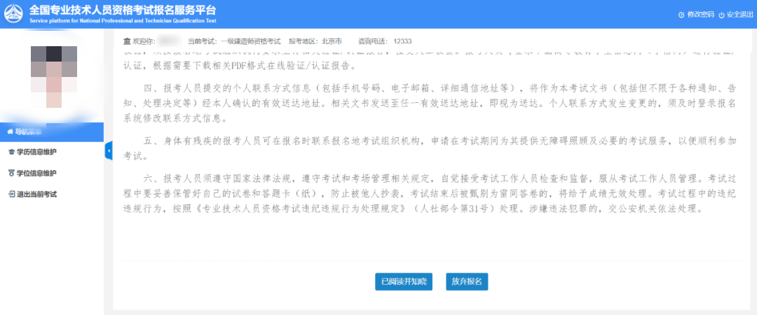 报考人员仔细阅读报考须知,并点击“已阅读并知晓”。