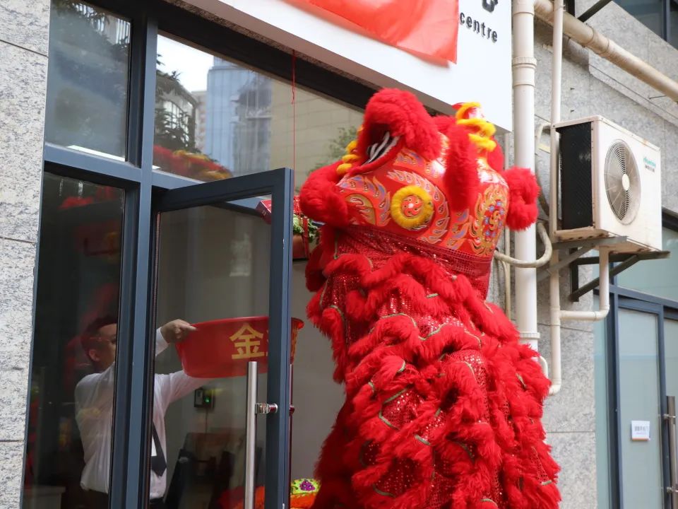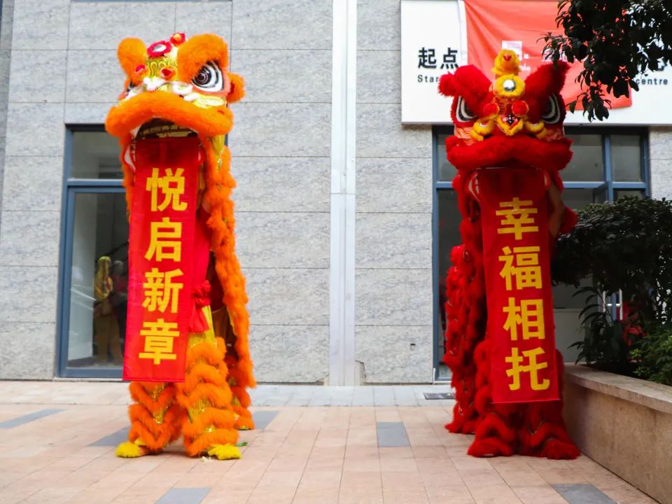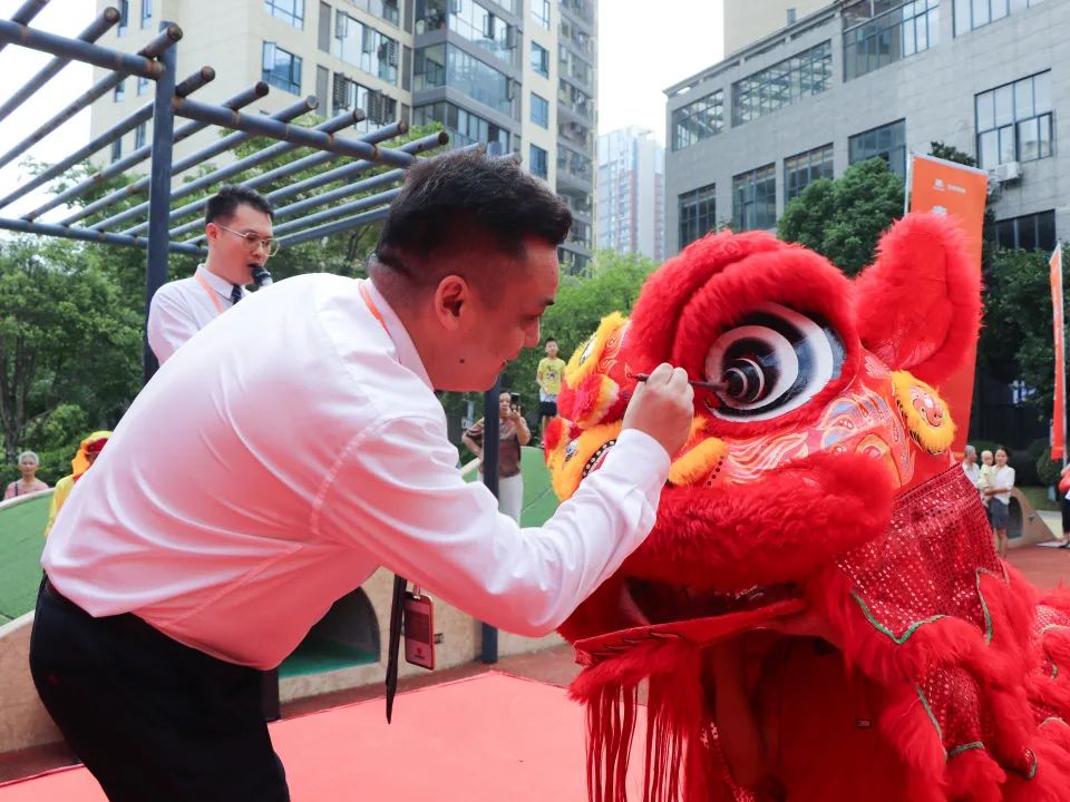 象征着吉祥与活力的瑞狮灵动起舞,将现场气氛推向高潮!在全体业主的瞩目下,业主委员会胡主任、赣州一片区总经理曾招强先生共同执笔,为瑞狮点睛。