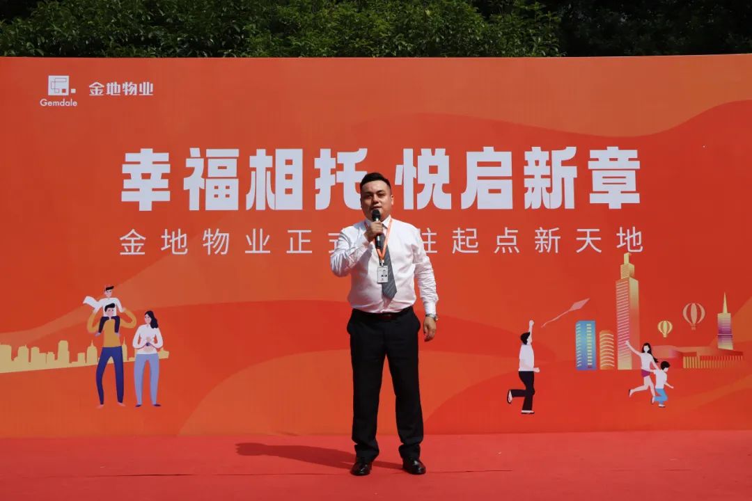 仪式伊始,主持人简要介绍了赣州公司一路走来取得的成绩,也表明了公司深耕品质的坚定决心。随后,业主委员会胡主任登台致辞。他表示:“我们相信,金地物业作为有着30余年服务经验的老牌物业公司,可以凭借专业、规范的服务体系为小区注入新的活力。”