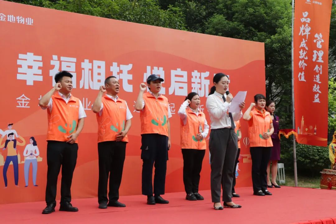 “我承诺,将秉承金地物业核心价值观,‘用心做事,诚信为人,果敢进取,永怀梦想’。我承诺,将践行‘精品服务 真情关爱’的服务理念,坚守初心、秉持匠心,持续为客户提供更舒适的服务体验!”