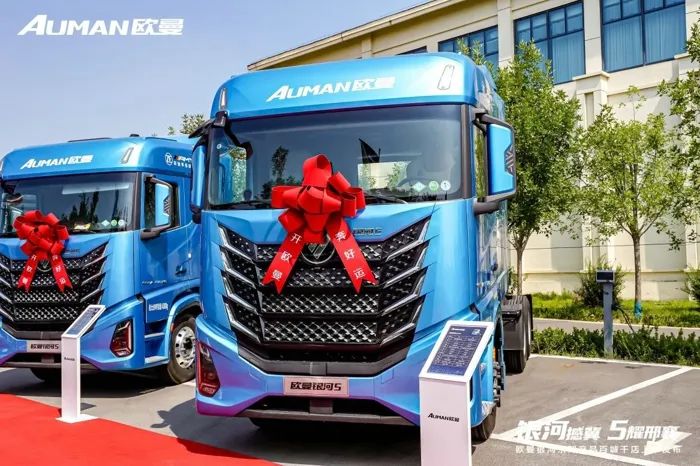 其中,在天然气重卡领域,福田汽车于7月中旬发布了欧曼银河5/5M燃气车三款新品。新品一上市,就收获了行业大客户的大力支持,在河北邢台和山东临沂上市现场签下了133辆订单,并完成首批订单交付。在产品力上,欧曼银河5M 14N 510马力燃气车紧扣重载运输对动力、能效的双重诉求,深度契合煤炭、砂石料等运营场景,综合工况下能节气5%-6%,为用户带来更高运营效益。