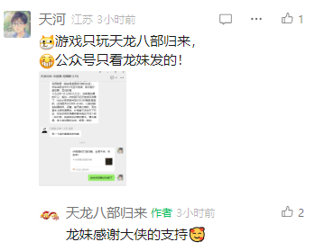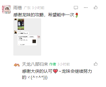 温馨提示:本期活动将在下期公众号开奖,请中奖的大侠私信龙妹发送中奖截图,龙妹会在3个工作日之内把礼包码私信发送给您,请注意查收哦~